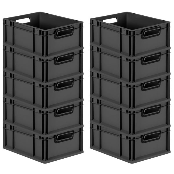 PROREGAL SuperSparSet 10x Eurobox NextGen Color, HxBxT 17x30x40cm, 16 Liter, Griffe schwarz offen, Schwarz, Eurobehälter, Transportbox, Transportbehälter, Stapelbehälter