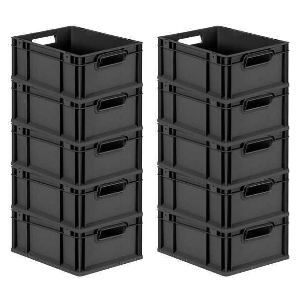 PROREGAL SuperSparSet 10x Eurobox NextGen Grip, HxBxT 17x30x40cm, 16 Liter, Griffe offen, Schwarz, Eurobehälter, Transportbox, Transportbehälter, Stapelbehälter