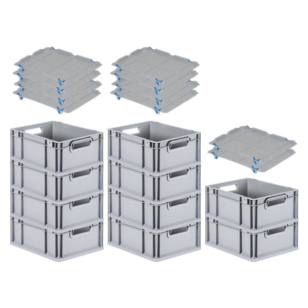 PROREGAL SuperSparSet 10x Eurobox NextGen Grip mit Auflagedeckel mit 4 Blauen Schiebeschnappverschlüssen HxBxT 17 x 30 x 40 cm 16 Liter Griffe