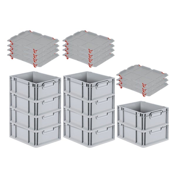 PROREGAL SuperSparSet 10x Eurobox NextGen Grip mit Auflagedeckel mit 4 Roten Schiebeschnappverschlüssen HxBxT 17 x 30 x 40 cm 16 Liter