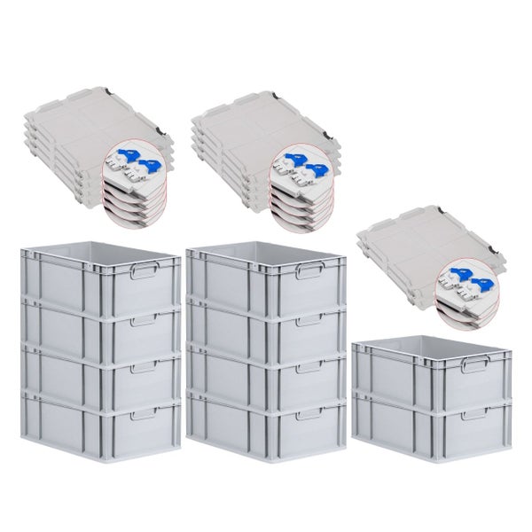 PROREGAL SuperSparSet 10x Eurobox NextGen Grip mit Scharnierdeckel und Blauen Schiebeschnappverschlüssen HxBxT 22 x 40 x 60 cm 44 Liter