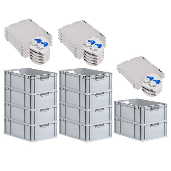 PROREGAL SuperSparSet 10x Eurobox NextGen Grip mit Scharnierdeckel und Blauen Schiebeschnappverschlüssen HxBxT 22 x 40 x 60 cm 44 Liter