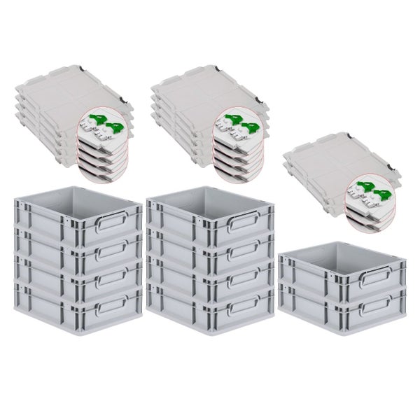 PROREGAL SuperSparSet 10x Eurobox NextGen Grip mit Scharnierdeckel und Grünen Schiebeschnappverschlüssen HxBxT 12 x 30 x 40 cm 11 Liter
