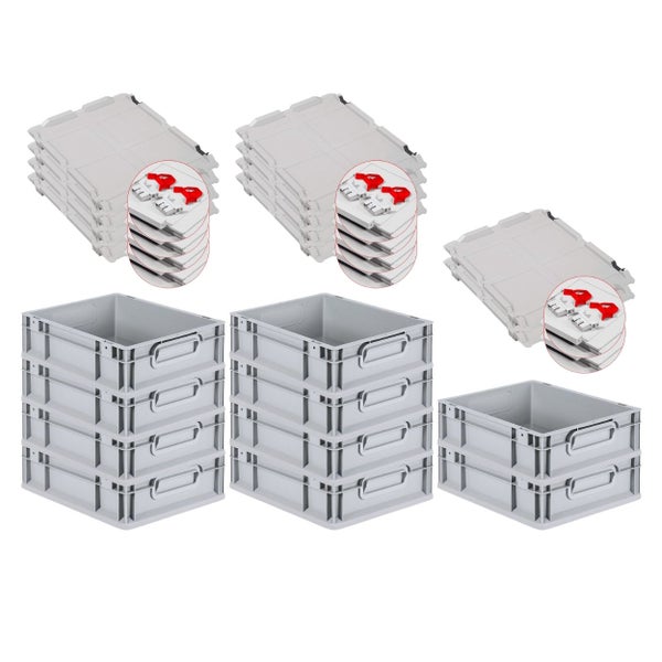 PROREGAL SuperSparSet 10x Eurobox NextGen Grip mit Scharnierdeckel und Roten Schiebeschnappverschlüssen HxBxT 12 x 30 x 40 cm 11 Liter