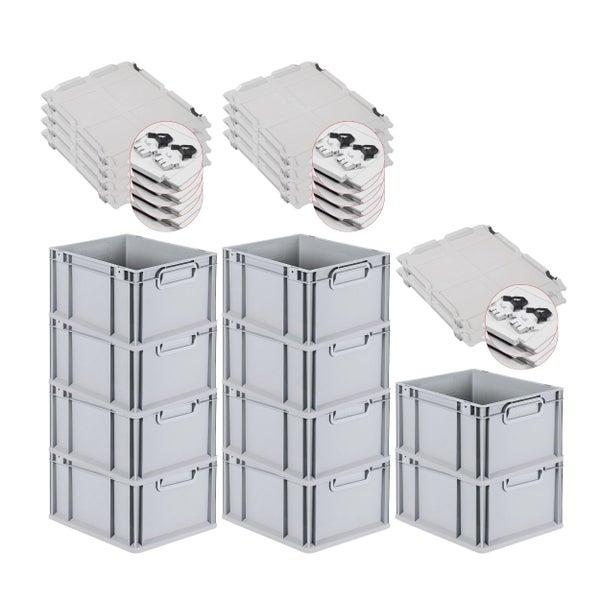 PROREGAL SuperSparSet 10x Eurobox NextGen Grip mit Scharnierdeckel und Schwarzen Schiebeschnappverschlüssen HxBxT 22 x 30 x 40 cm 20 Liter