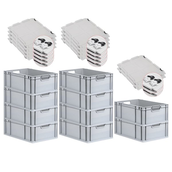 PROREGAL SuperSparSet 10x Eurobox NextGen Grip mit Scharnierdeckel und Schwarzen Schiebeschnappverschlüssen HxBxT 22 x 40 x 60 cm 44 Liter