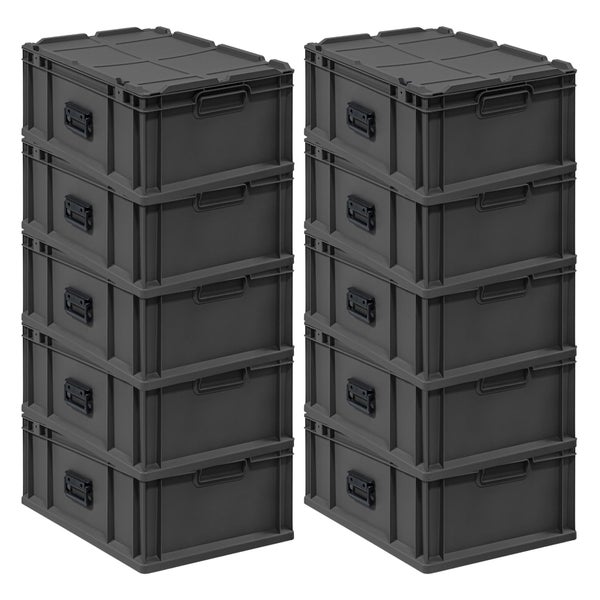 PROREGAL SuperSparSet 10x Eurobox NextGen Portable, HxBxT 23,5x40x60cm, 44 Liter, Schwarz, Eurobehälter, Transportbox, Transportbehälter, Stapelbehälter