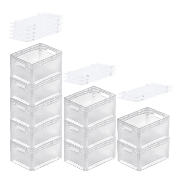 PROREGAL SuperSparSet 10x Transparenter Eurobehälter LightLine mit Offenem Griff und Auflagedeckel HxBxT 22 x 30 x 40 cm 24 Liter Eurobox
