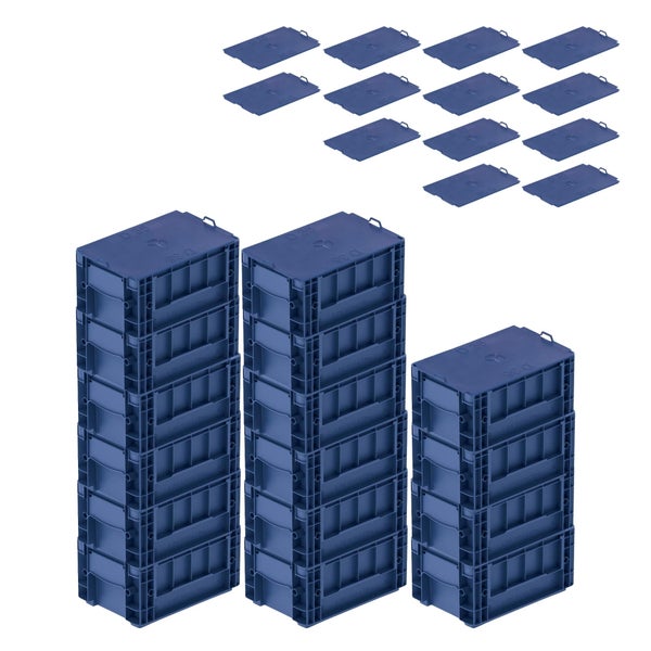 PROREGAL SuperSparSet 16 x VDA KLT Kleinladungsträger Mit Verbundboden und Auflagedeckel HxBxT 14,7 x 20 x 30 cm 5,3 Liter KLT Transportbox