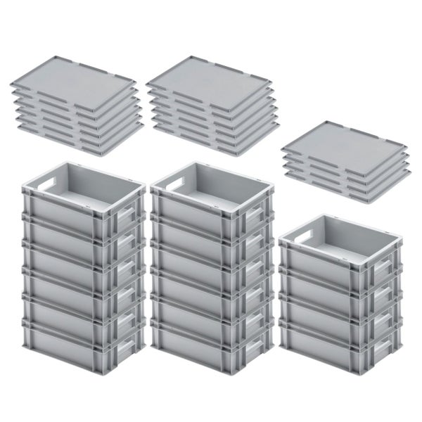 PROREGAL SuperSparSet 16x Eurobehälter mit Offenem Griff und Auflagedeckel HxBxT 12 x 30 x 40 cm 11 Liter Grau Eurobox Transportbox