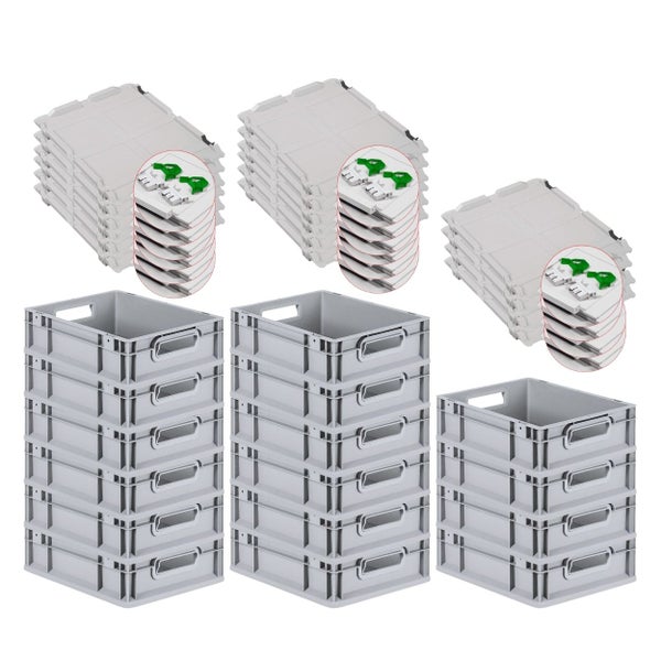 PROREGAL SuperSparSet 16x Eurobox NextGen Grip mit Scharnierdeckel und Grünen Schiebeschnappverschlüssen HxBxT 12 x 30 x 40 cm 11 Liter Griffe