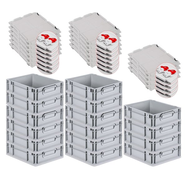 PROREGAL SuperSparSet 16x Eurobox NextGen Grip mit Scharnierdeckel und Roten Schiebeschnappverschlüssen HxBxT 12 x 30 x 40 cm 11 Liter
