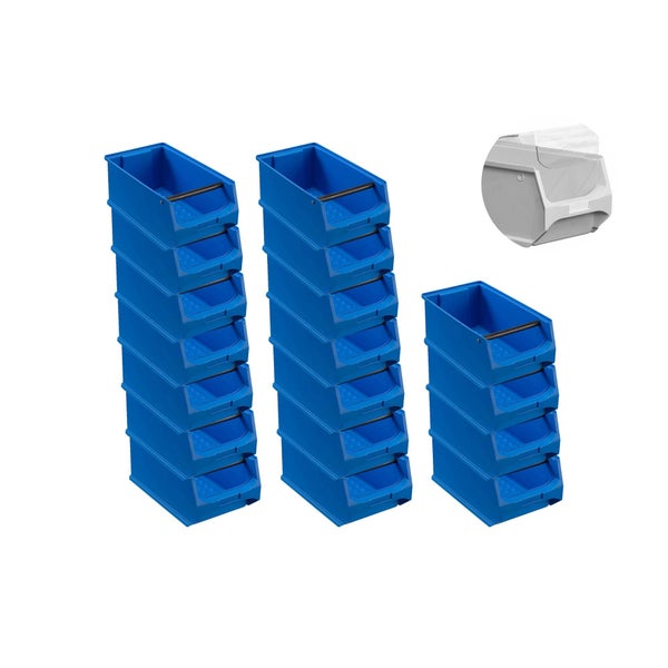 PROREGAL SuperSparSet 18 x Blaue Sichtlagerbox 4.1 Mit Griffstange und Abdeckung HxBxT 15 x 20 x 35 cm 7,2 Liter Sichtlagerbehälter Sichtlagerkasten