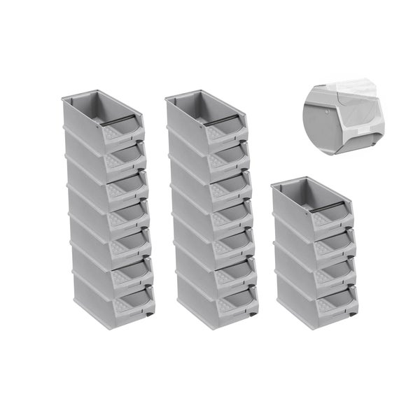 PROREGAL SuperSparSet 18 x Graue Sichtlagerbox 4.1 Mit Griffstange und Abdeckung HxBxT 15 x 20 x 35 cm 7,2 Liter Sichtlagerbehälter Sichtlagerkasten