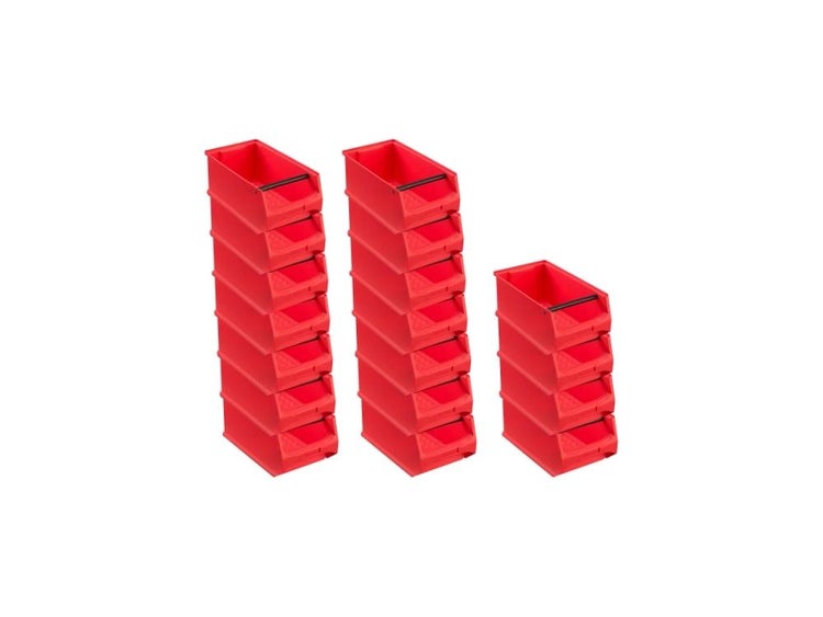 PROREGAL SuperSparSet 18x Rote Sichtlagerbox 4.1 mit Griffstange HxBxT 15 x 20 x 35 cm 7,2 Liter Sichtlagerbehälter