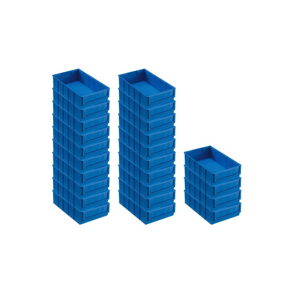 PROREGAL SuperSparSet 24 x Blaue Indurstriebox 300 B HxBxT 8,1 x 18,3 x 30 cm 3,4 Liter Sortimentskasten