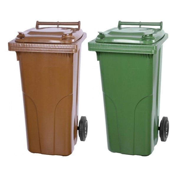PROREGAL SuperSparSet 2x 2-Rad-Mülltonne Mgb HDPE-Kunststoff 120 Liter Braun & Grün