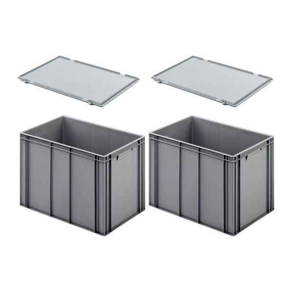 PROREGAL SuperSparSet 2x Eurobehälter mit Geschlossenem Griff und Scharnierdeckel HxBxT 42 x 40 x 60 cm 70 Liter Grau Eurobox Transportbox