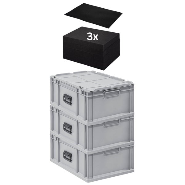 PROREGAL SuperSparSet 3 x Eurobox NextGen Portable Mit Rasterschaumstoff und Schaumstoffeinlage HxBxT 23,5 x 40 x 60 cm 44 Liter Eurobehälter Transportbox