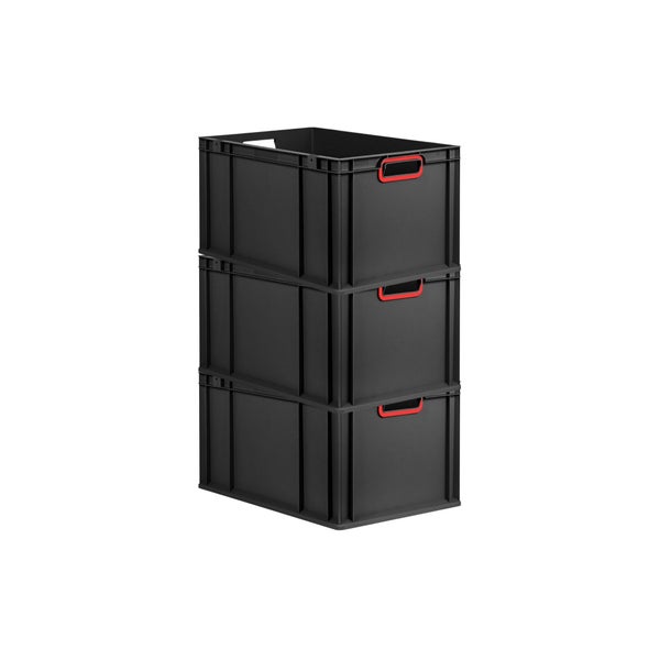PROREGAL SuperSparSet 3x Eurobox NextGen Color, HxBxT 32x40x60cm, 65 Liter, Griffe rot offen, Verstärkter Boden, Schwarz, Eurobehälter, Transportbox, Transportbehälter, Stapelbehälter