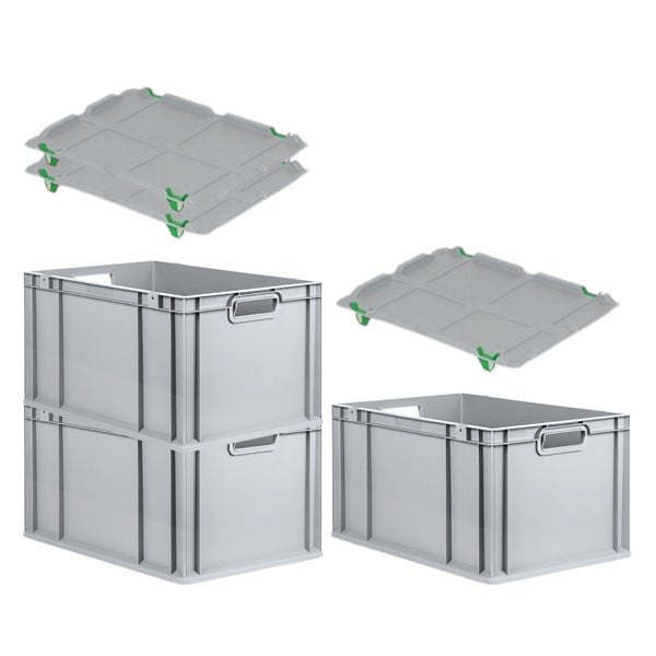 PROREGAL SuperSparSet 3x Eurobox NextGen Grip mit Auflagedeckel mit 4 Grünen Schiebeschnappverschlüssen HxBxT 32 x 40 x 60 cm 65 Liter