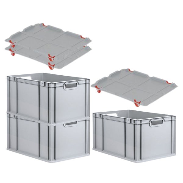 PROREGAL SuperSparSet 3x Eurobox NextGen Grip mit Auflagedeckel mit 4 Roten Schiebeschnappverschlüssen HxBxT 32 x 40 x 60 cm 65 Liter