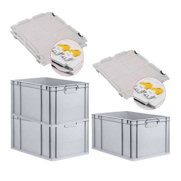 PROREGAL SuperSparSet 3x Eurobox NextGen Grip mit Scharnierdeckel und Gelben Schiebeschnappverschlüssen HxBxT 32 x 40 x 60 cm 65 Liter