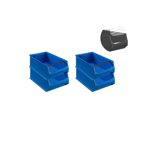 PROREGAL SuperSparSet 4 x Blaue Sichtlagerbox 5.1 Mit Griffstange und Abdeckung HxBxT 20 x 30 x 50 cm 21,8 Liter Sichtlagerbehälter Sichtlagerkasten