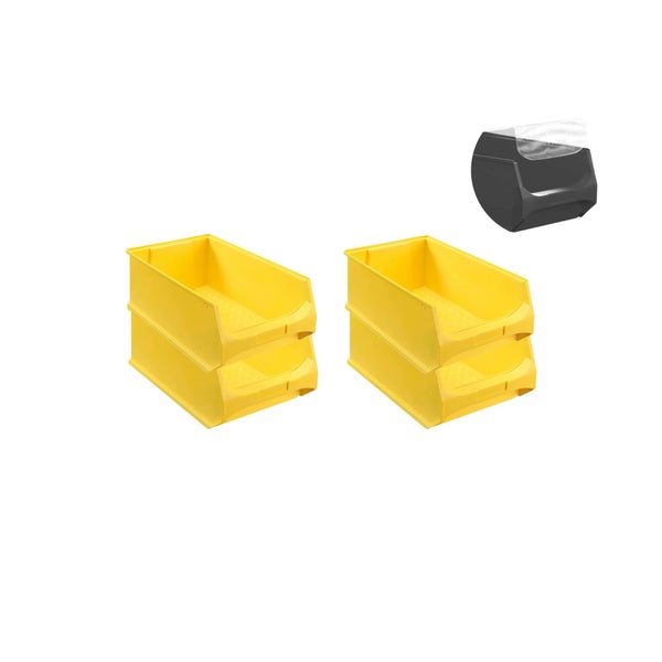 PROREGAL SuperSparSet 4 x Gelbe Sichtlagerbox 5.0 Mit Abdeckung HxBxT 20 x 30 x 50 cm 21,8 Liter Sichtlagerbehälter Sichtlagerkasten