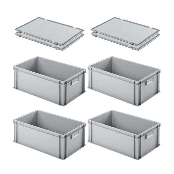 PROREGAL SuperSparSet 4x Eurobehälter mit Geschlossenem Griff und Scharnierdeckel HxBxT 22 x 40 x 60 cm 38 Liter Grau Eurobox Transportbox