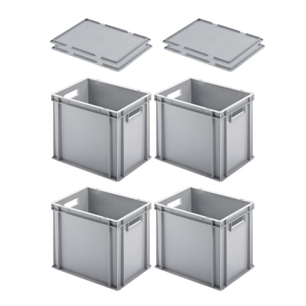 PROREGAL SuperSparSet 4x Eurobehälter mit Offenem Griff und Auflagedeckel HxBxT 32 x 30 x 40 cm 29 Liter Grau Eurobox Transportbox