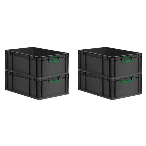 PROREGAL SuperSparSet 4x Eurobox NextGen Color, HxBxT 22x40x60cm, 44 Liter, Griffe grün geschlossen, Verstärkter Boden, Schwarz, Eurobehälter, Transportbox, Transportbehälter, Stapelbehälter