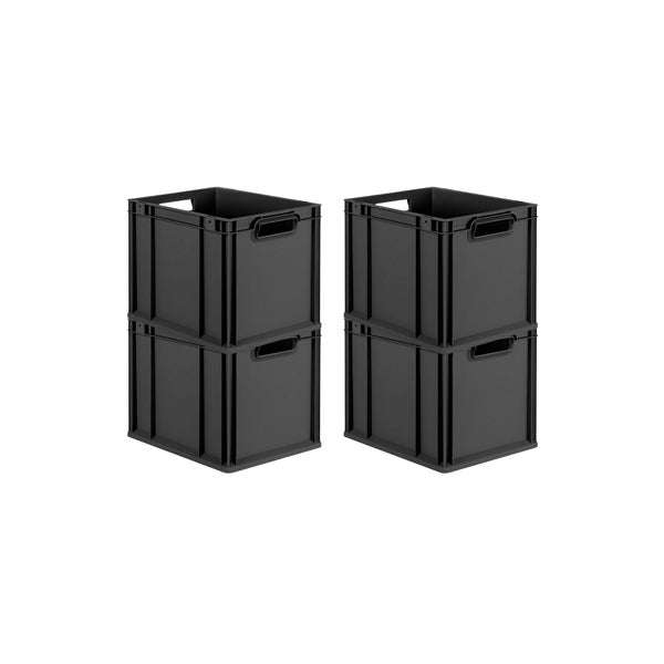 PROREGAL SuperSparSet 4x Eurobox NextGen Grip, HxBxT 32x30x40cm, 30 Liter, Griffe offen, Schwarz, Eurobehälter, Transportbox, Transportbehälter, Stapelbehälter