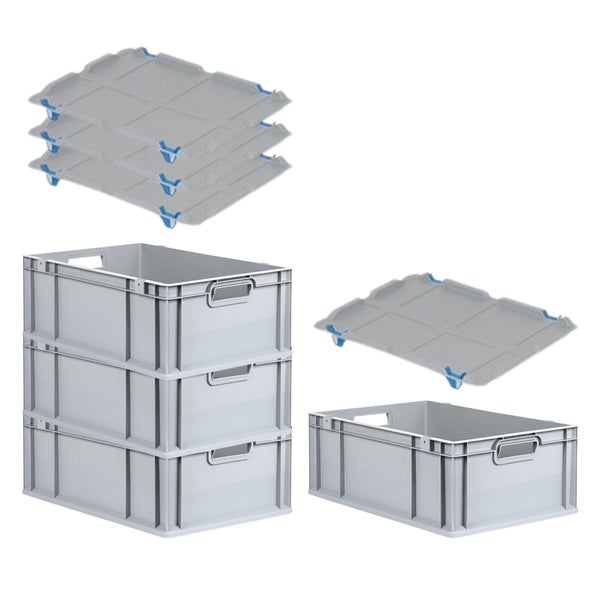PROREGAL SuperSparSet 4x Eurobox NextGen Grip mit Auflagedeckel mit 4 Blauen Schiebeschnappverschlüssen HxBxT 22 x 40 x 60 cm 44 Liter