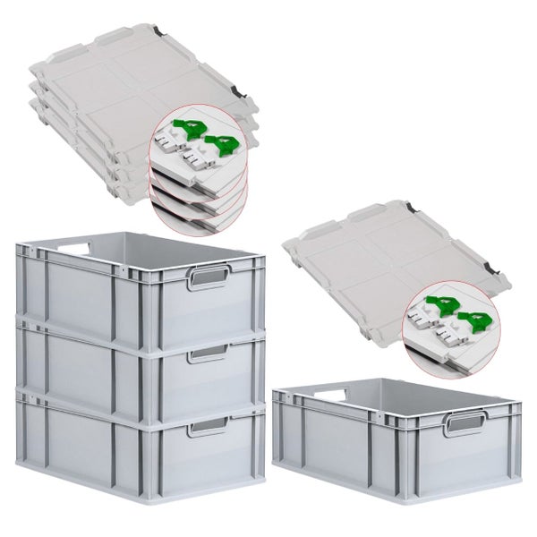 PROREGAL SuperSparSet 4x Eurobox NextGen Grip mit Scharnierdeckel und Grünen Schiebeschnappverschlüssen HxBxT 22 x 40 x 60 cm 44 Liter