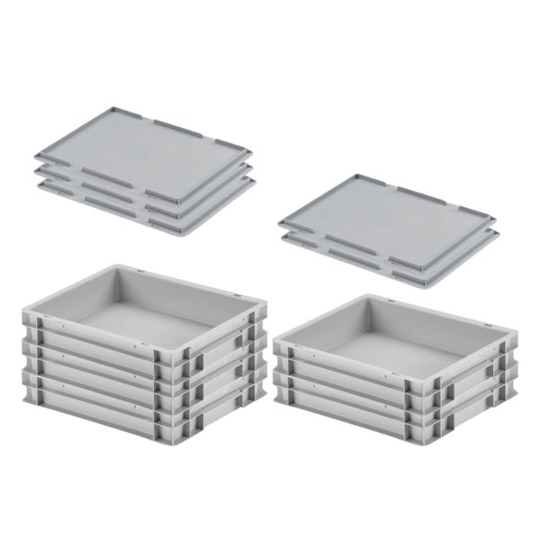 PROREGAL SuperSparSet 5 x Eurobehälter Mit Geschlossenem Griff und Auflagedeckel HxBxT 7,5 x 30 x 40 cm 9 Liter Grau Eurobox Transportbox