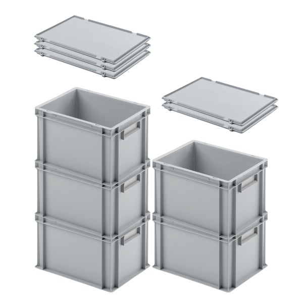 PROREGAL SuperSparSet 5 x Eurobehälter Mit Geschlossenem Griff und Scharnierdeckel HxBxT 23,5 x 30 x 40 cm 22 Liter Grau Eurobox Transportbox