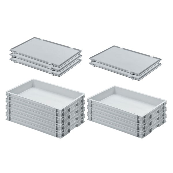 PROREGAL SuperSparSet 5 x Eurobehälter Mit Geschlossenem Griff und Scharnierdeckel HxBxT 7,5 x 40 x 60 cm 15 Liter Grau Eurobox Transportbox