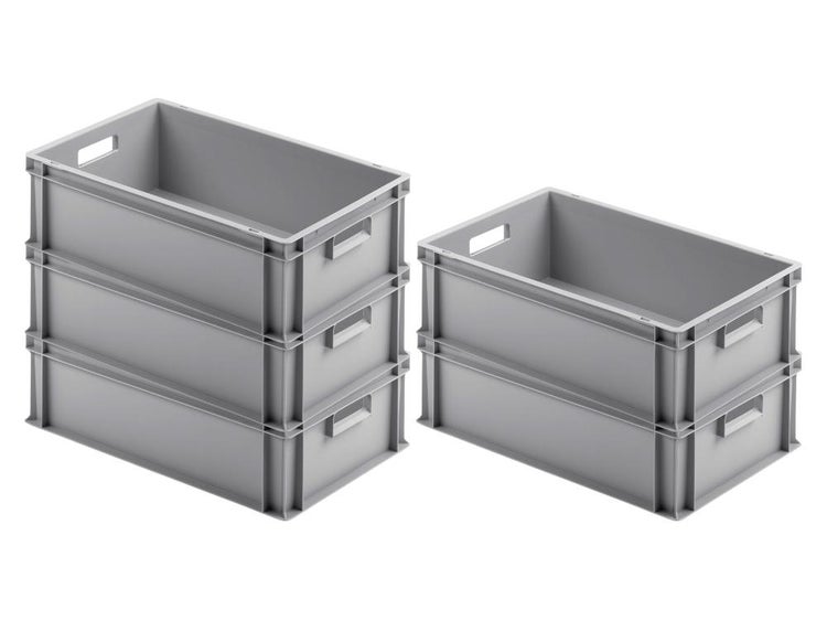 PROREGAL SuperSparSet 5 x Eurobehälter Mit Offenem Griff HxBxT 17,5 x 40 x 60 cm 30 Liter Grau Eurobox Transportbox Transportbehälter Stapelbehälter