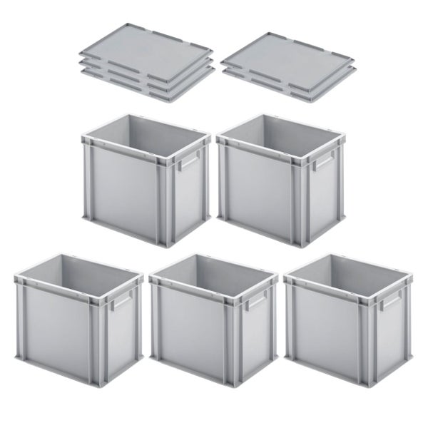 PROREGAL SuperSparSet 5x Eurobehälter mit Geschlossenem Griff und Auflagedeckel HxBxT 32 x 30 x 40 cm 29 Liter Grau Eurobox Transportbox