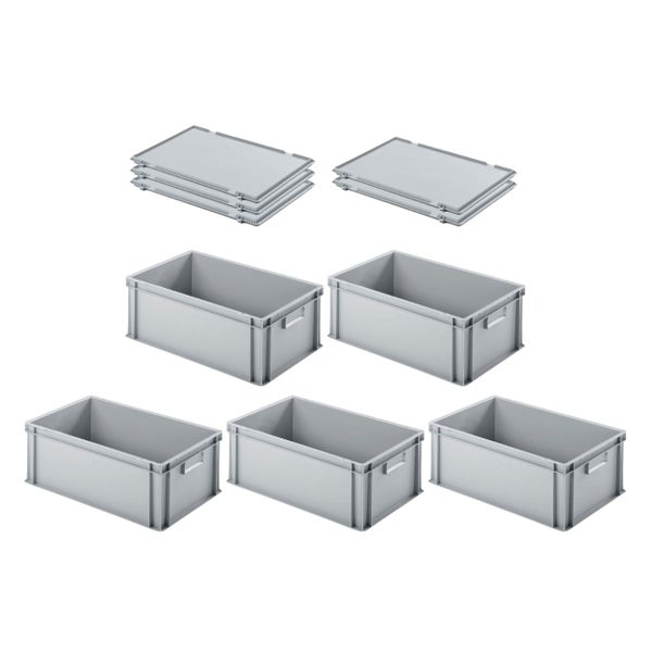 PROREGAL SuperSparSet 5x Eurobehälter mit Geschlossenem Griff und Scharnierdeckel HxBxT 22 x 40 x 60 cm 38 Liter Grau Eurobox Transportbox