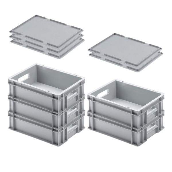 PROREGAL SuperSparSet 5x Eurobehälter mit Offenem Griff und Auflagedeckel HxBxT 12 x 30 x 40 cm 11 Liter Grau Eurobox Transportbox