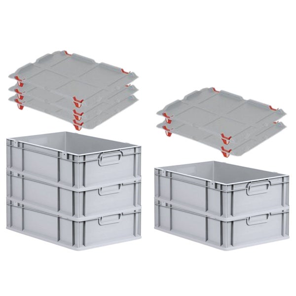 PROREGAL SuperSparSet 5x Eurobox NextGen Grip mit Auflagedeckel mit 4 Roten Schiebeschnappverschlüssen HxBxT 17 x 40 x 60 cm 34 Liter