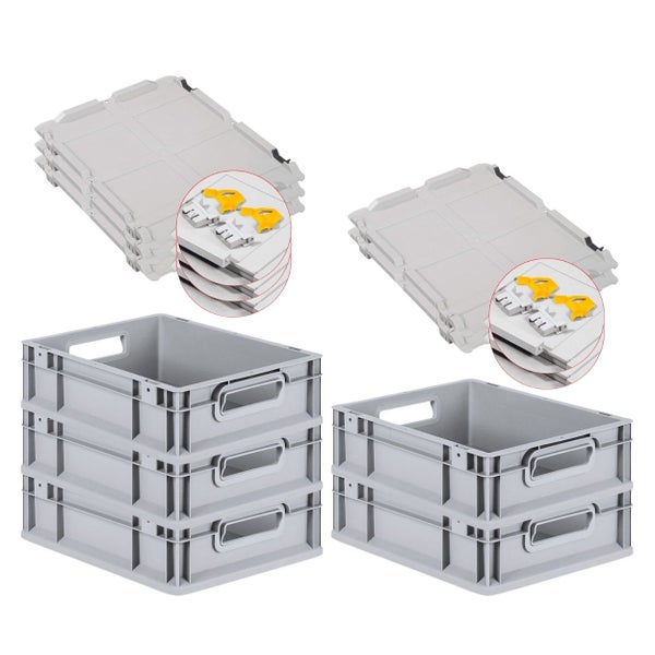 PROREGAL SuperSparSet 5x Eurobox NextGen Grip mit Scharnierdeckel und Gelben Schiebeschnappverschlüssen HxBxT 12 x 30 x 40 cm 11 Liter Griffe
