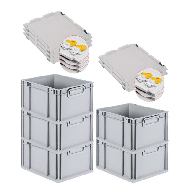 PROREGAL SuperSparSet 5x Eurobox NextGen Grip mit Scharnierdeckel und Gelben Schiebeschnappverschlüssen HxBxT 22 x 30 x 40 cm 20 Liter