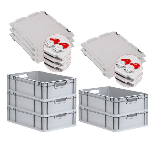 PROREGAL SuperSparSet 5x Eurobox NextGen Grip mit Scharnierdeckel und Roten Schiebeschnappverschlüssen HxBxT 17 x 40 x 60 cm 34 Liter Griffe