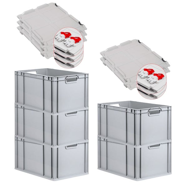 PROREGAL SuperSparSet 5x Eurobox NextGen Grip mit Scharnierdeckel und Roten Schiebeschnappverschlüssen HxBxT 32 x 40 x 60 cm 65 Liter