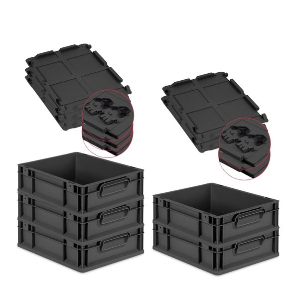 - Robuste Eurobox in Euronorm für Industrie & Gewerbe: die Eurobox in Anthrazit aus stabilem und recyceltem Kunststoff Polypropylen (r-PP) ist der perfekte Eurobehälter für Lagerung, Transport und Aufbewahrung