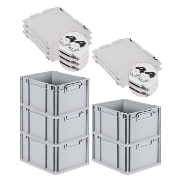 PROREGAL SuperSparSet 5x Eurobox NextGen Grip mit Scharnierdeckel und Schwarzen Schiebeschnappverschlüssen HxBxT 22 x 30 x 40 cm 20 Liter