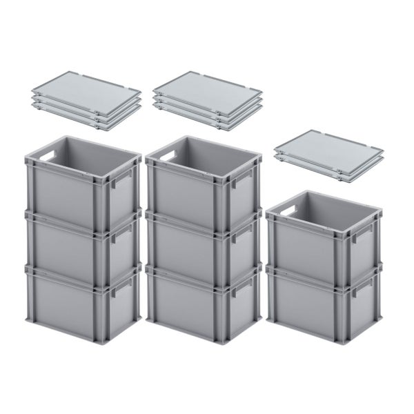 PROREGAL SuperSparSet 8 x Eurobehälter Mit Offenem Griff und Scharnierdeckel HxBxT 23,5 x 30 x 40 cm 22 Liter Grau Eurobox Transportbox